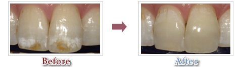 |  | 従来のホワイトスポット治療は、歯を削ってプラスチックを詰めたり、ベニアを貼り付けたりする方法が一般的でした。しかし、当院では歯を削らずにホワイトスポットを治療する「アイコン(Icon)」という方法を採用しています。 |